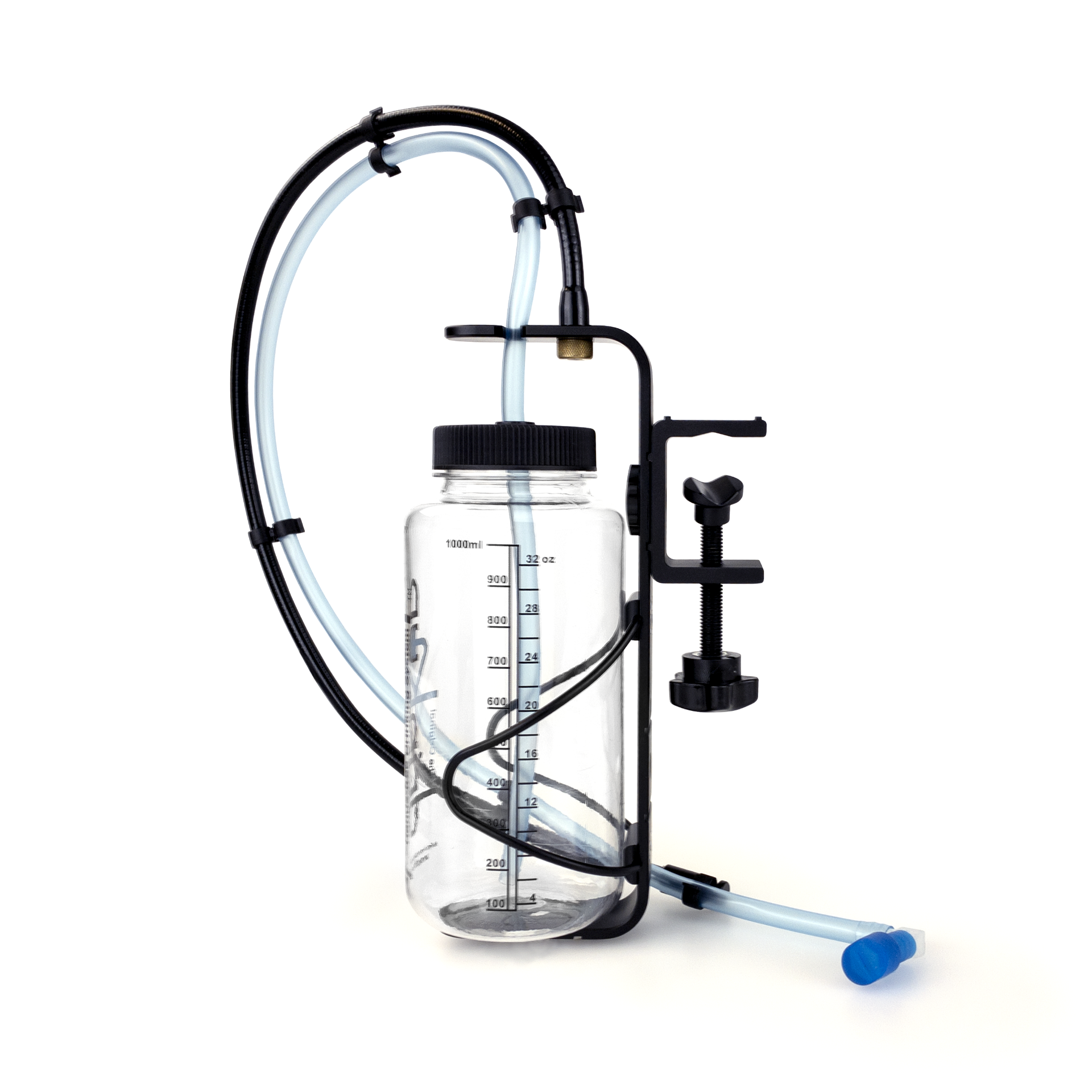 Thoughtfully designed for ease and comfort, the system is positioned with the 1-litre bottle above the user’s mouth, allowing gravity to assist fluid flow and reduce the effort needed to drink. This can be particularly helpful for individuals with reduced strength, as the anti-siphon, non-return bite valve helps control the flow while requiring only light suction. The flow of fluid can be controlled by the carer adjusting the height of the bottle or by the user varying the pressure of their bite on the valve.