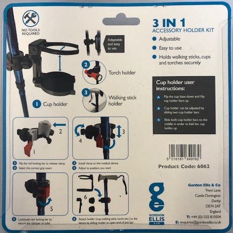 A 3 in 1 solution which securely holds cups, torches and walking sticks.